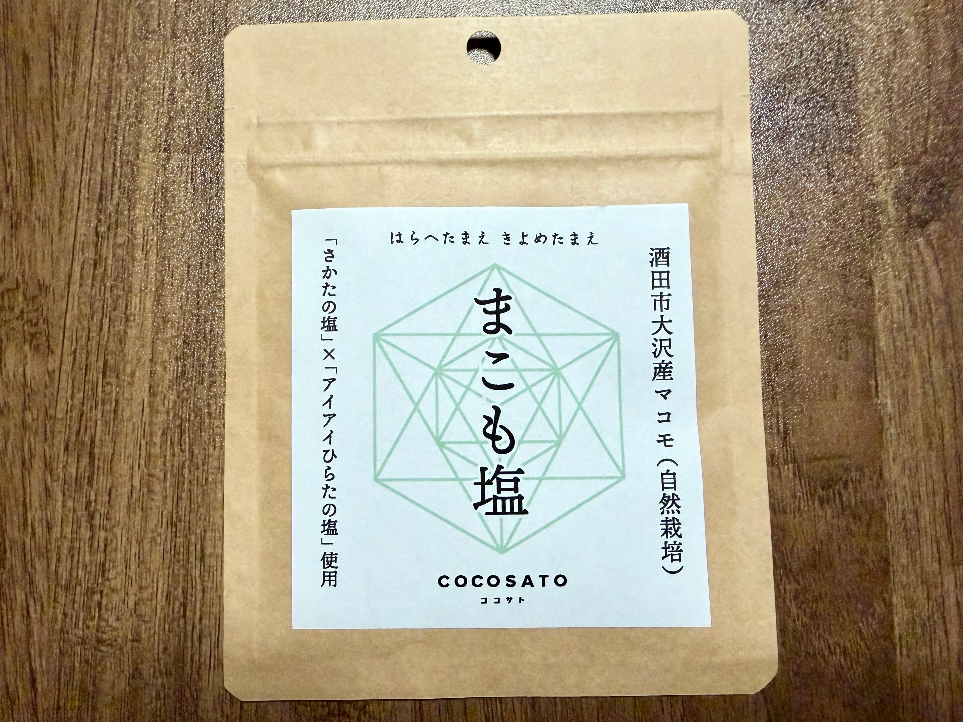 2024年7月の豪雨災害で土砂に埋まっても奇跡的に生き残った、山形県酒田市八幡地域 大沢地区のマコモタケ。その株から生まれたマコモの葉っぱとマコモタケを使用し、「さかたの塩」×「アイアイひらたの塩」のW塩とブレンド。身体にやさしくて、まろやかな塩をつくりました。野菜、山菜、天ぷら、ご飯やおにぎりにもどうぞ。